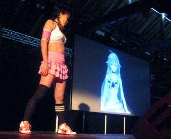 Creating an immersive experience for a live show with a virtual artist presents a number of challenges. IA surmounts many of these issues with elaborate video projections and guest performers on stage. While those large-scale elements of a typical IA show couldn’t be replicated faithfully for her UK showcase, the introduction of two additional dancers helped give the stage performance more of an impact.